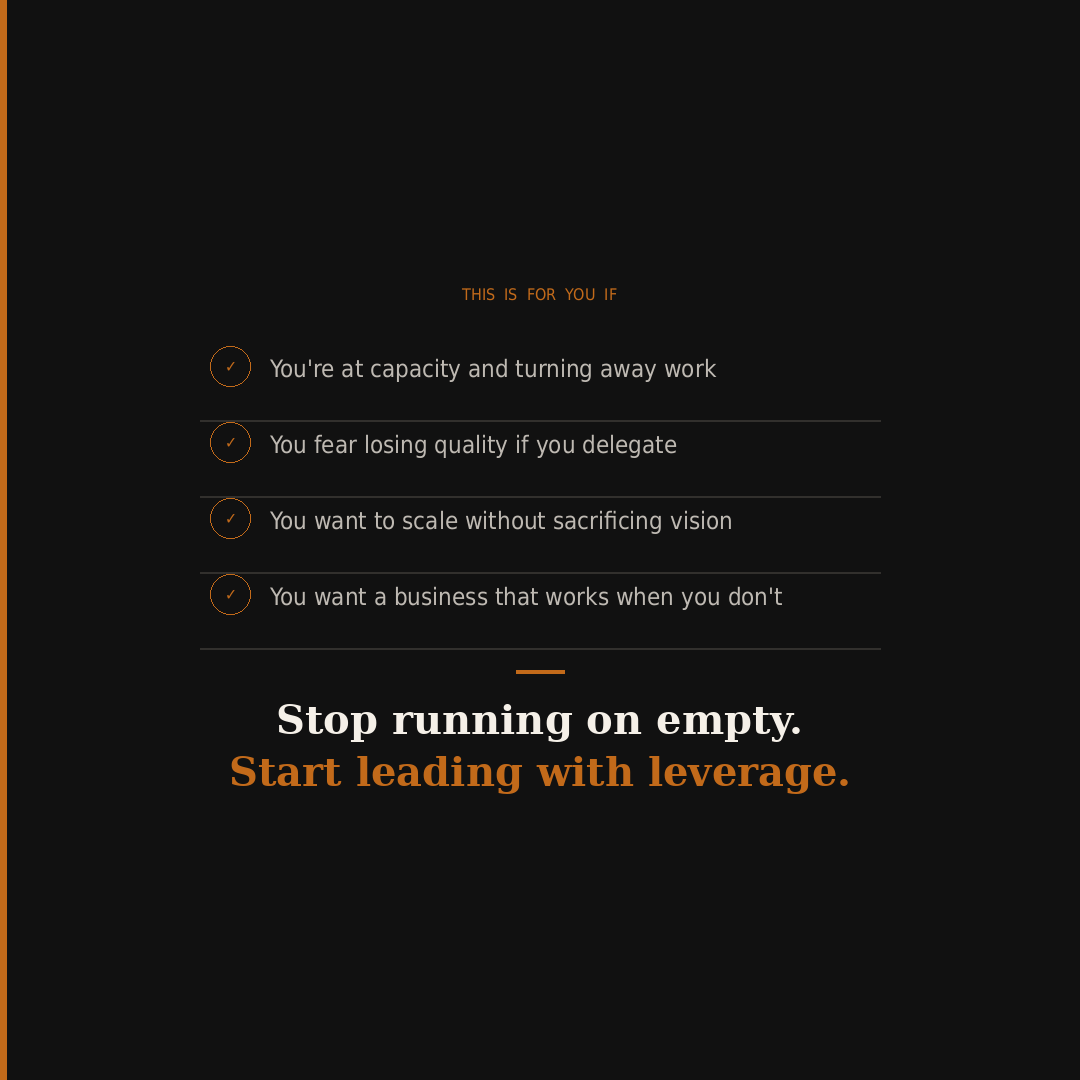 Get full access to all current and future courses, plus a personal monthly consult and direct email support, so you can sharpen your thinking, refine your systems, and hold yourself to the standard you already know you’re capable of.